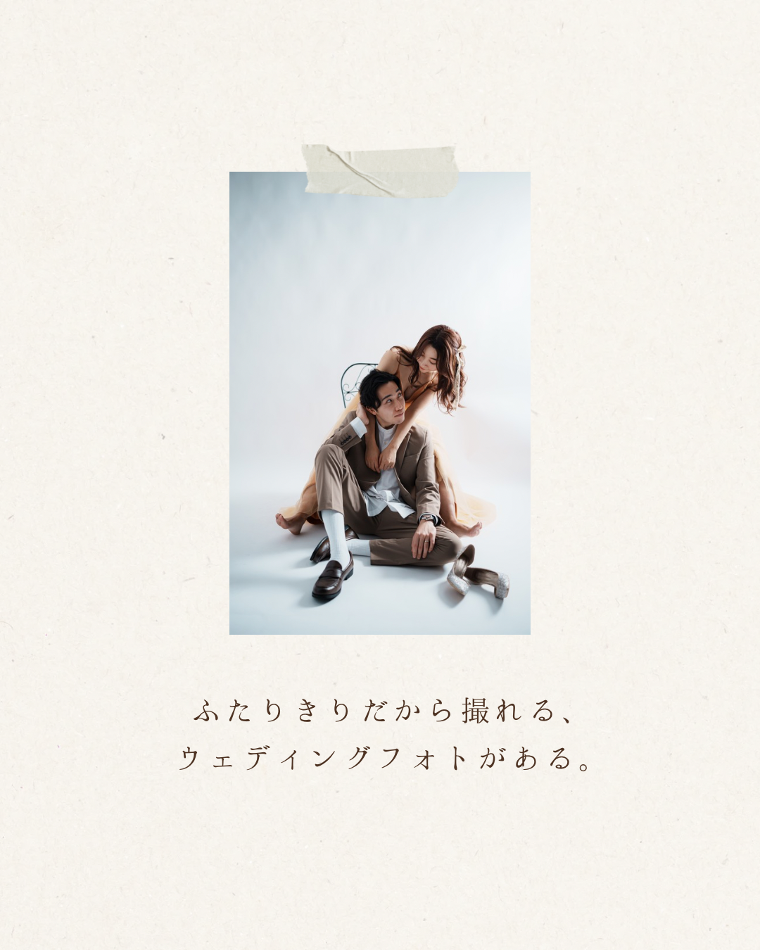 カメラマンなど他人の視線を気にせず、二人だけの空間で、心からリラックスした瞬間を残してほしい。 それが、私たちの原点であり、変わらない想いです。