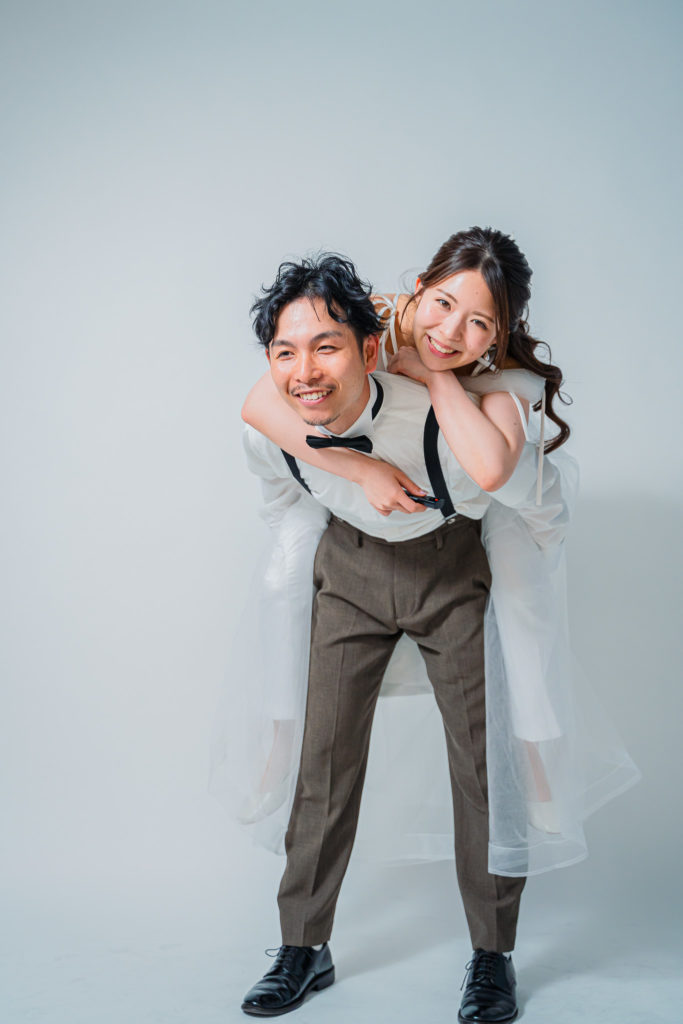 「結婚式で使用するペーパーアイテムやオープニングムービーの素材を撮りに伺いました。アクセサリーやアイテムも豊富で、セルフ写真館とは思えない撮影スペースの広さを貸切で大満足でした!」