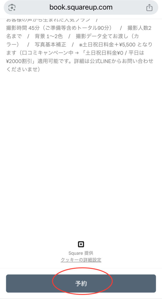 わかりにくい場合は下記の画像を参照して予約までお進みください。