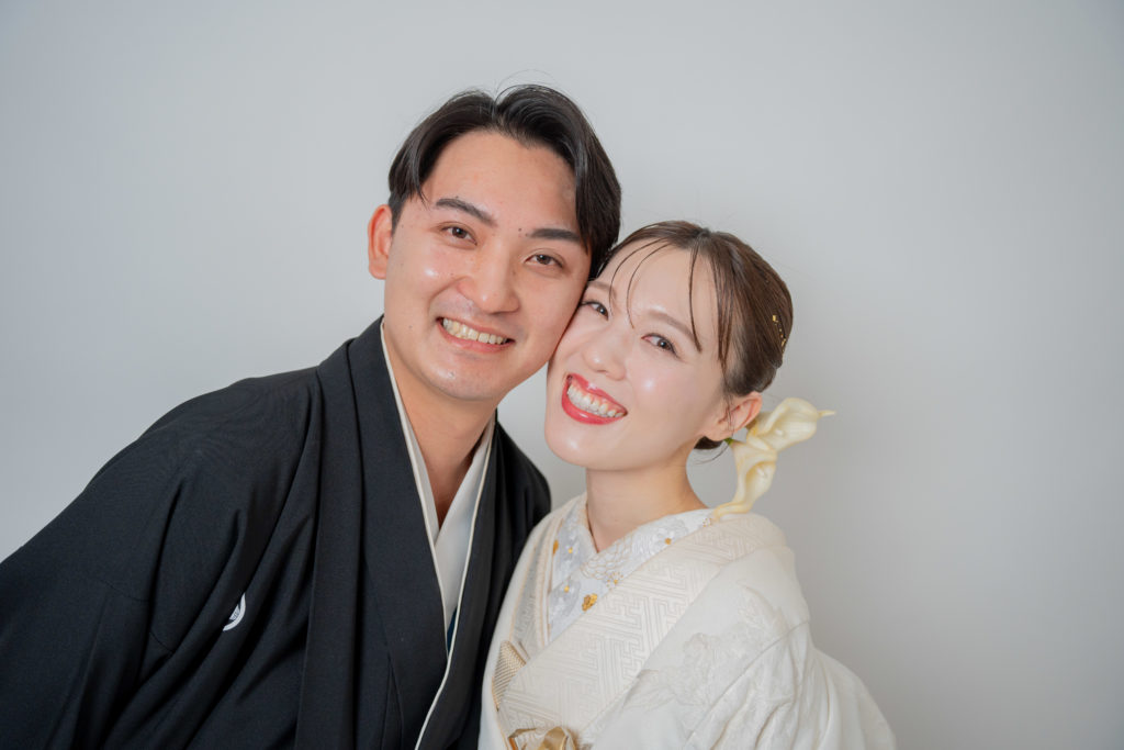 “後撮りで利用させて頂きました!王道〜変わり種の衣装や小物があり、さすが着物屋さんだなと思いました。無料で借りられる髪飾りも多く、そちらはスタッフさんに着けて頂けました。小物や髪飾りなど自分に合うものをセレクトして頂けたのも有り難かったです。 撮影はセルフフォトで2人きりでリラックスして楽しめながら撮影出来ました。20分の撮影時間でしたが、250枚も撮れて大満足です。オプションで最後にコンフェッティをやらせて頂きましたが、スタッフさん総出で盛り上げて撮影してくださるので、それがすごく楽しく素敵な写真になりました。 レタッチデータの納品も早く、価格も他の和装スタジオよりも安いので和装を考えている方やペーパーアイテムに和装の写真を取り入れたい方にオススメです!”(関東在住 M 様)